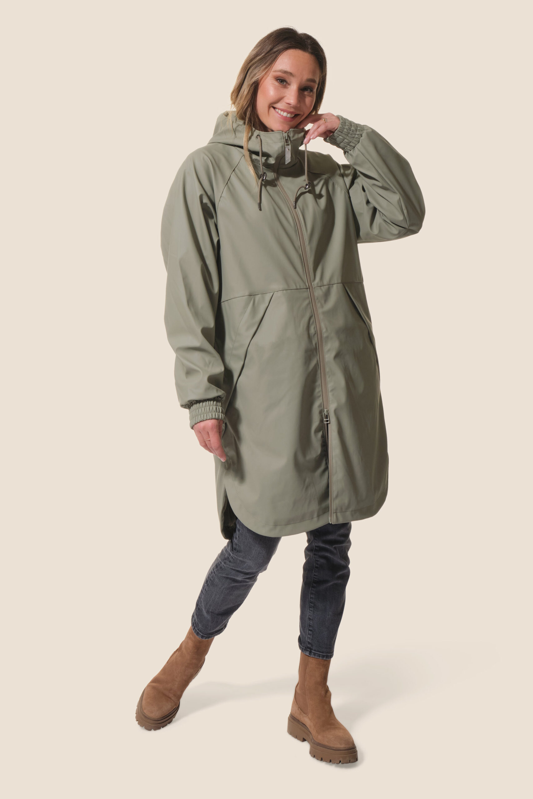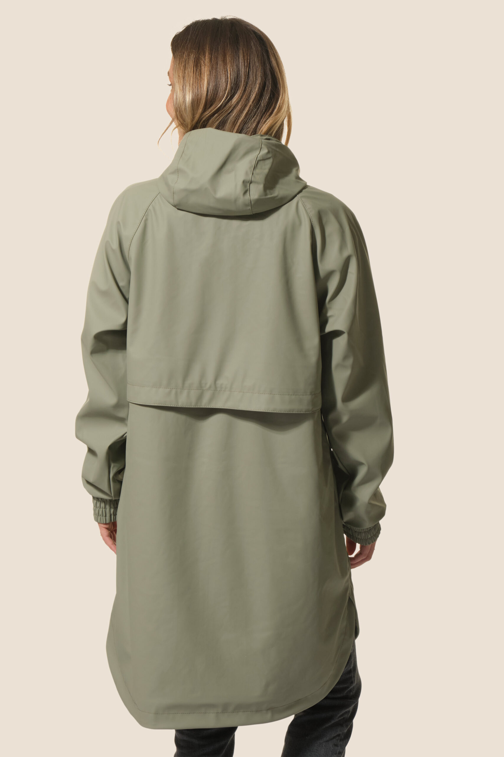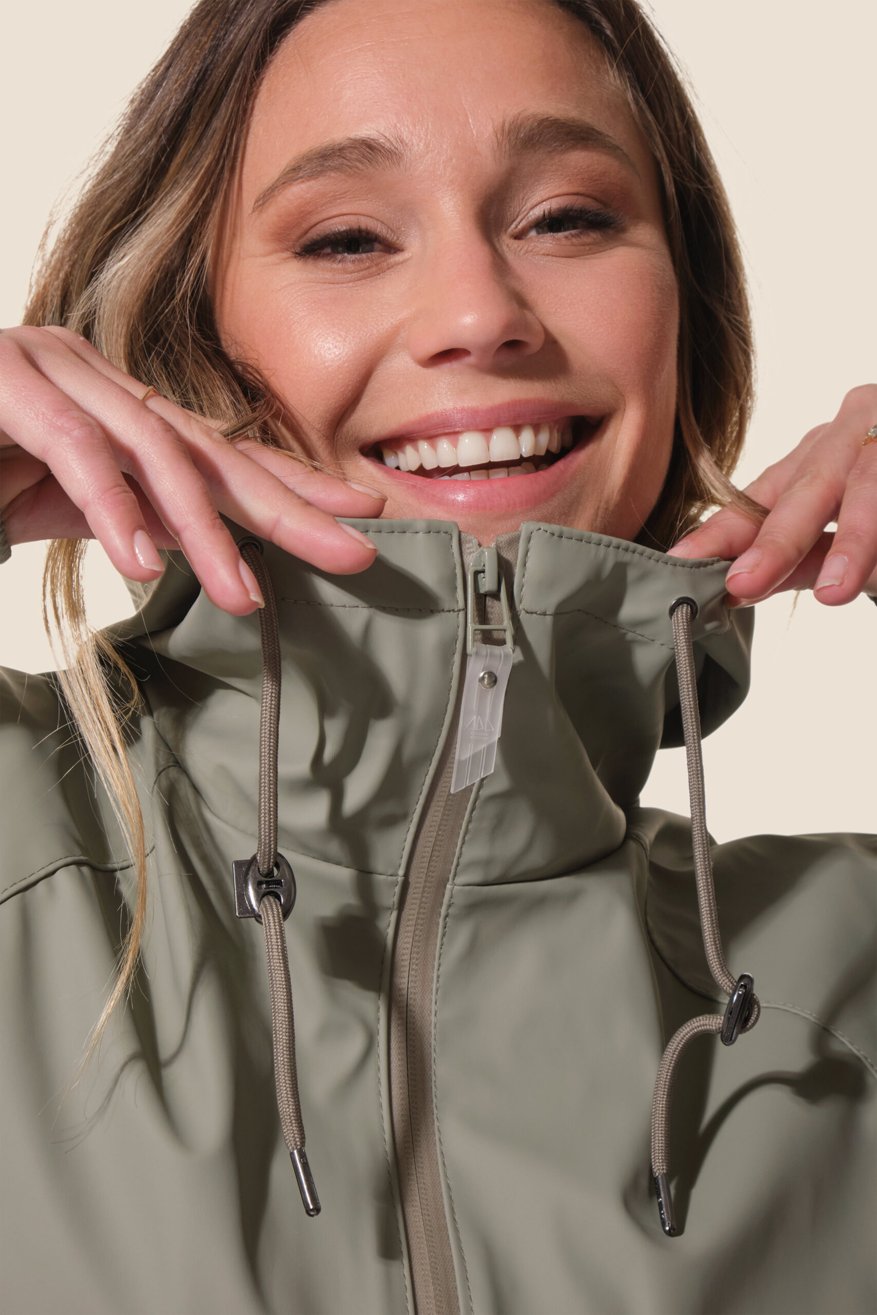 Chic et pratique, le ciré Betina protège de la pluie avec sa coupe droite, sa capuche réglable et sa fermeture étanche, tout en restant confortable et élégant grâce à ses manches raglan et sa doublure filet.