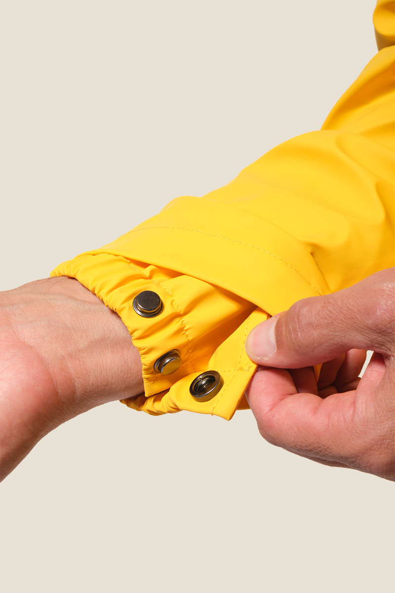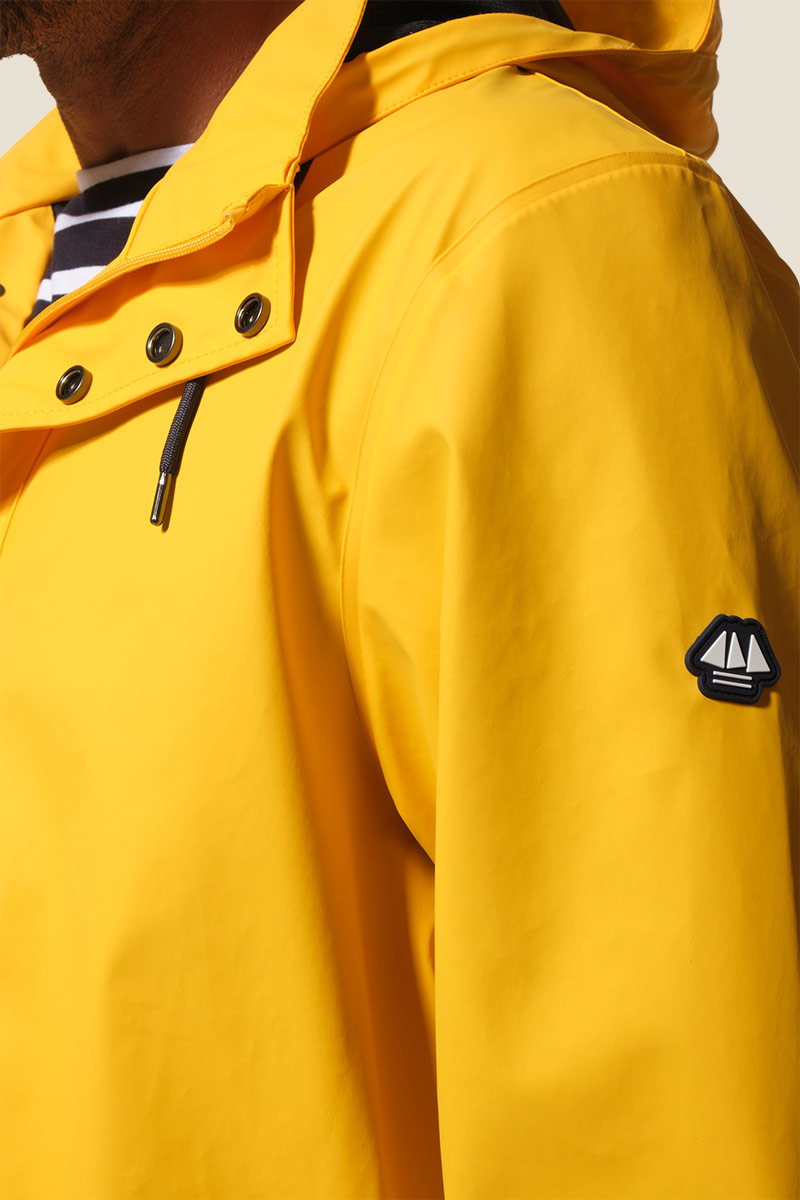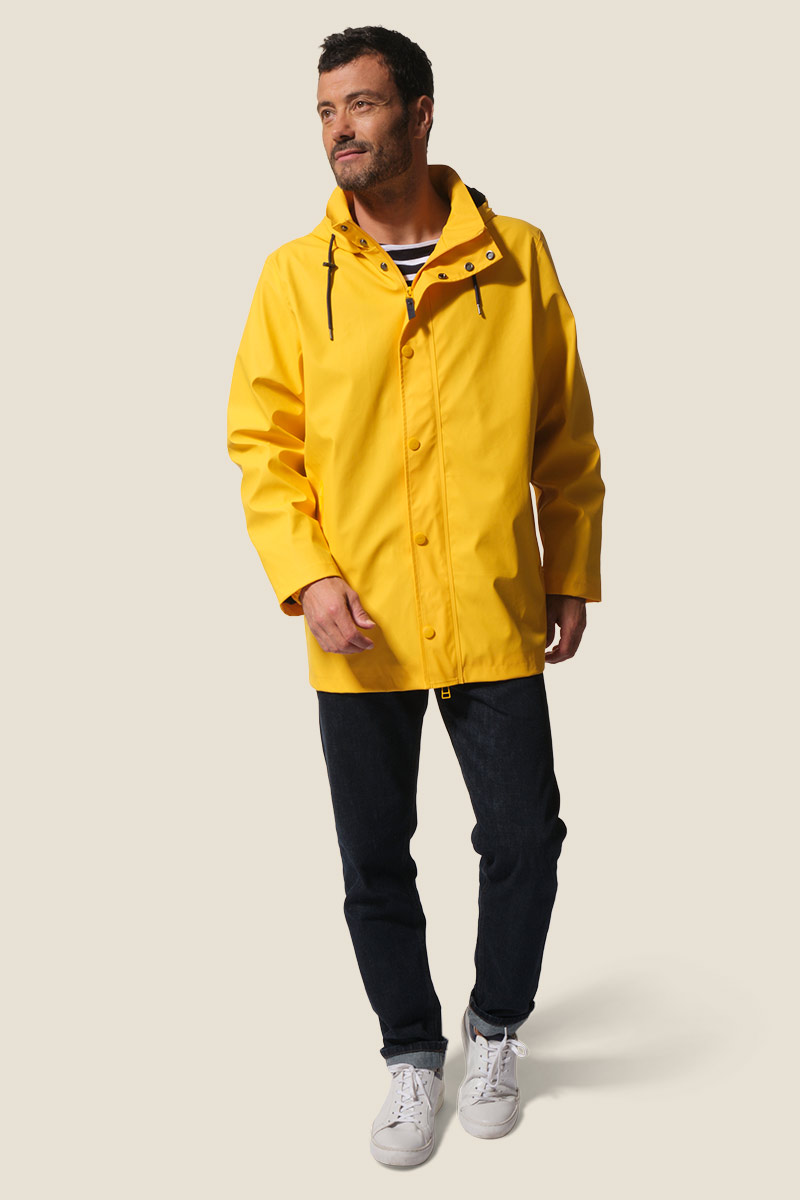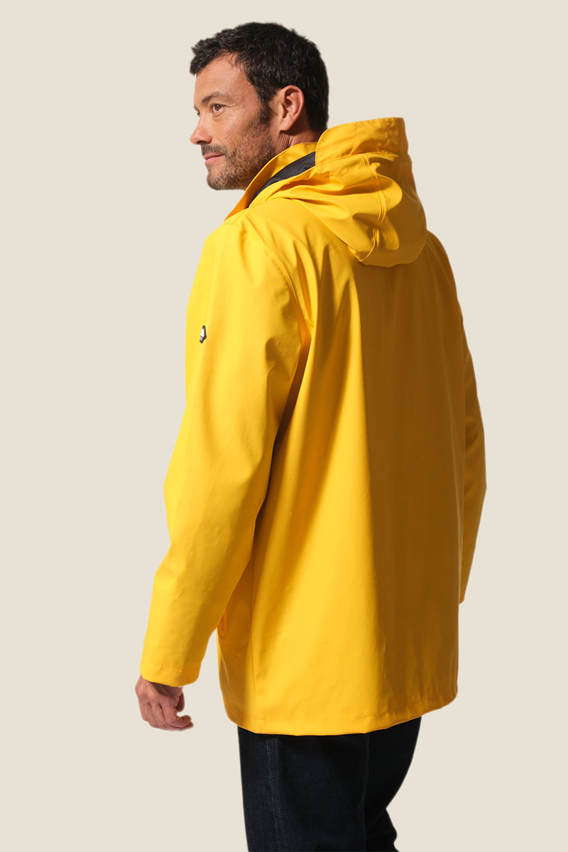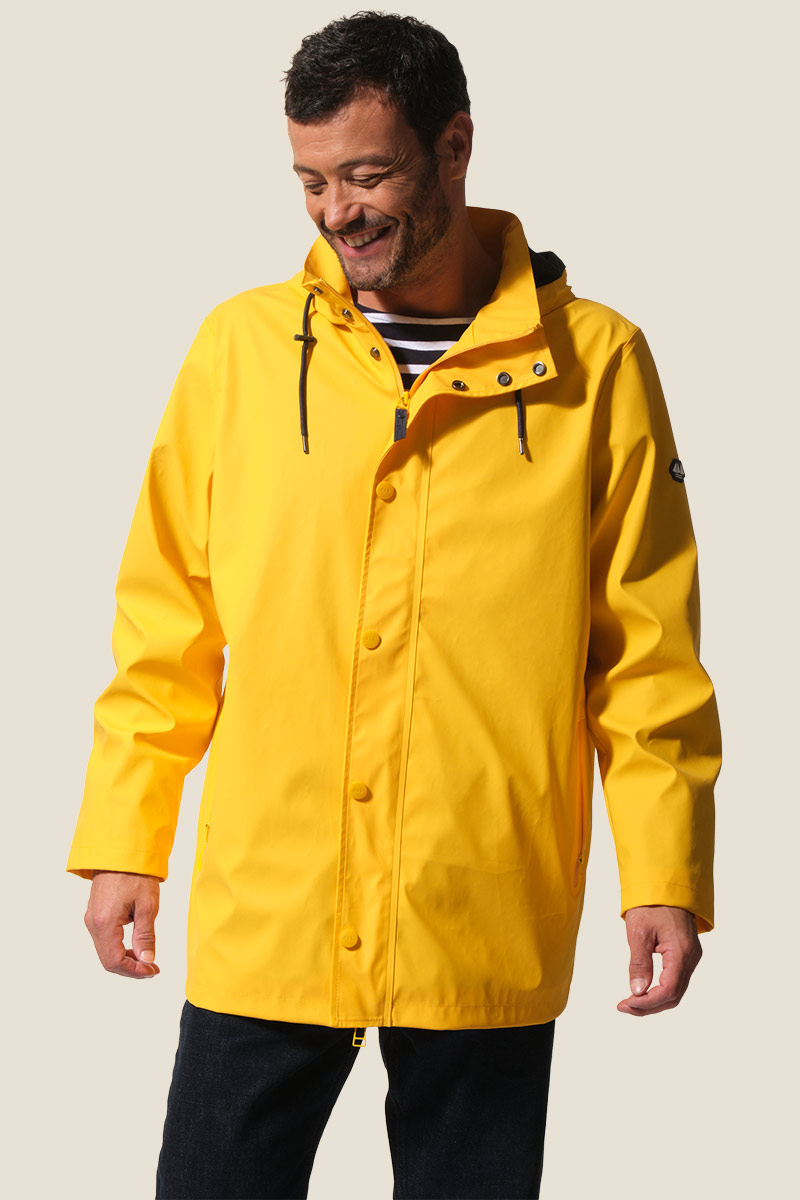 Le ciré Nomade est un imperméable court mixte à la coupe droite, conçu pour une protection optimale contre la pluie. Doté d’une capuche avec visière, de poches zippées étanches et d’une fermeture zippée double curseur sous patte à boutons-pression, il allie fonctionnalité et style. Ses coutures soudées et son imperméabilité 8000 mm garantissent une excellente résistance aux intempéries. ☔