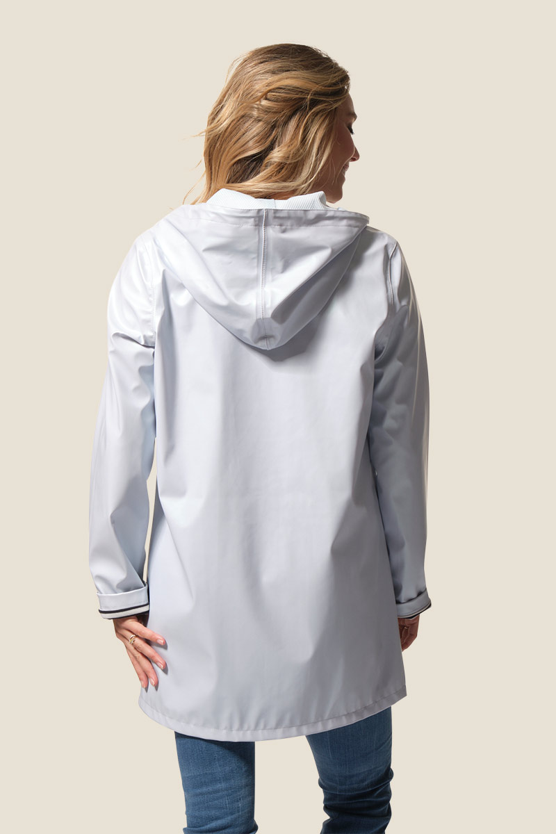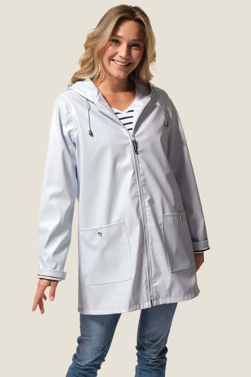 Le ciré Helena est un imperméable mi-long pour femme au fini métallisé et à la coupe droite. Doté d’une capuche avec cordon de serrage, d’une doublure filet et d’une fermeture zippée, il allie style et confort. Avec une imperméabilité de 4000 mm, il protège efficacement de la pluie au quotidien. ☔