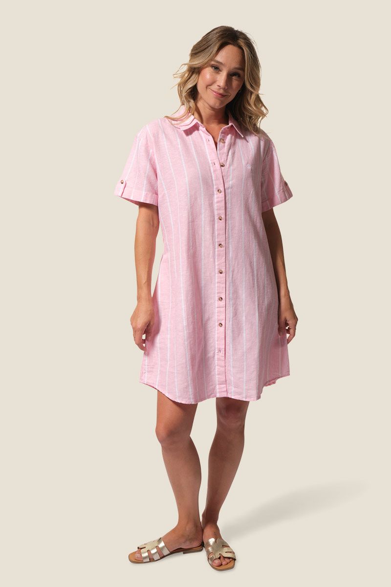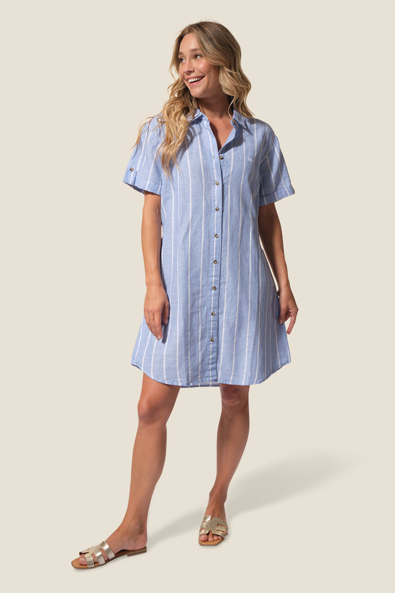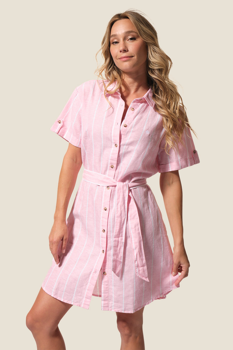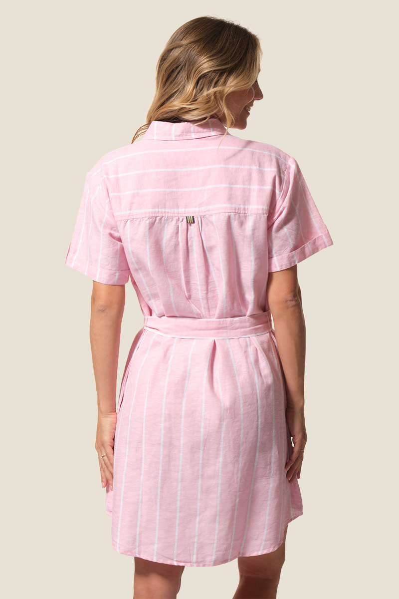 - Coupe légèrement évasée sur le bas et ceinture tissus amovible pour resserrer la taille