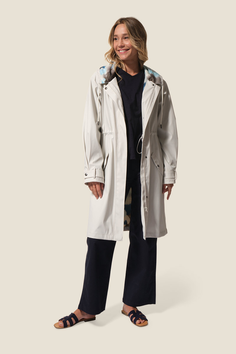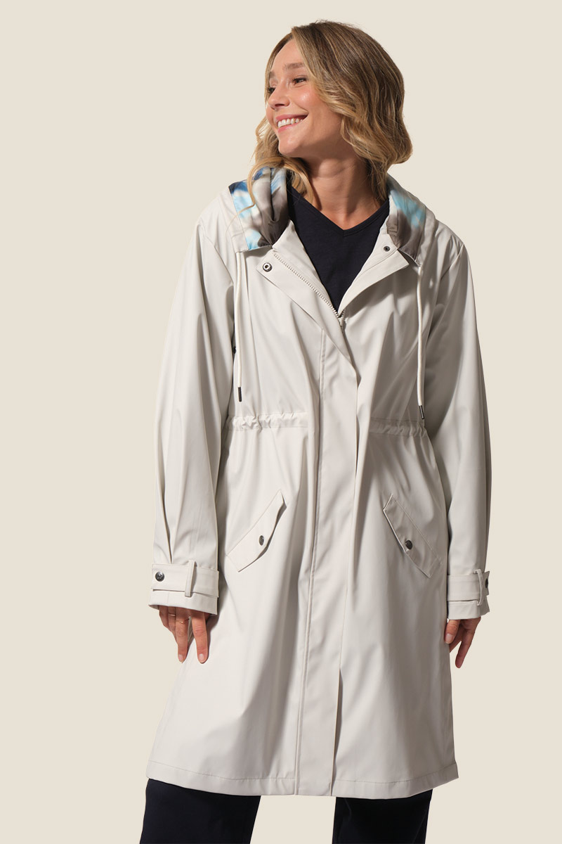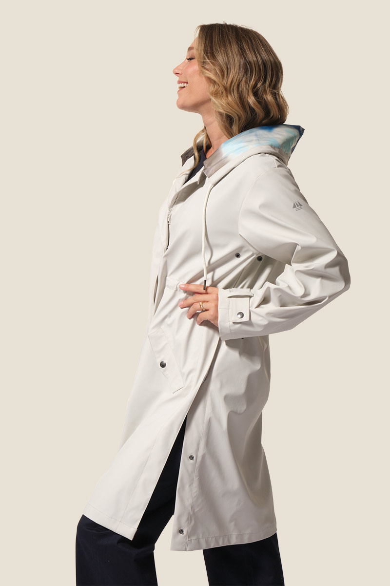 Le ciré Félicia est un imperméable long pour femme à la coupe ajustée avec lien de serrage à la taille. Doté d’une capuche doublée imprimée, de poches pratiques et de manches ajustables, il allie style et confort. Son imperméabilité 3000 mm protège efficacement de la pluie au quotidien. ☔