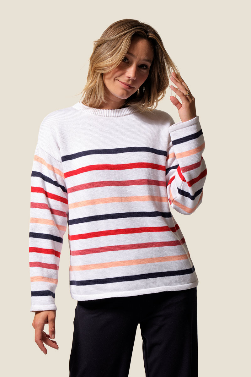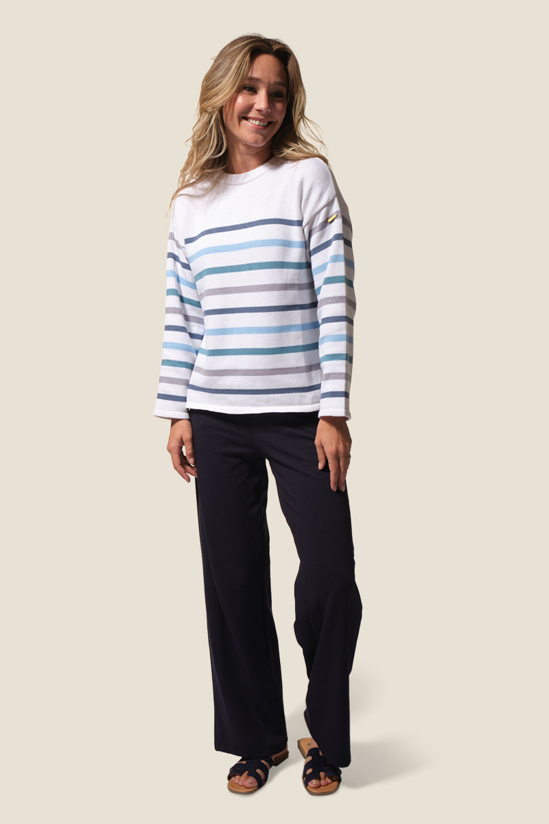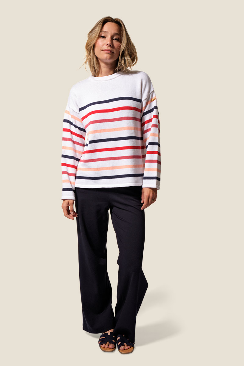 - Pull femme rayé coupe légèrement évasée sur le bas