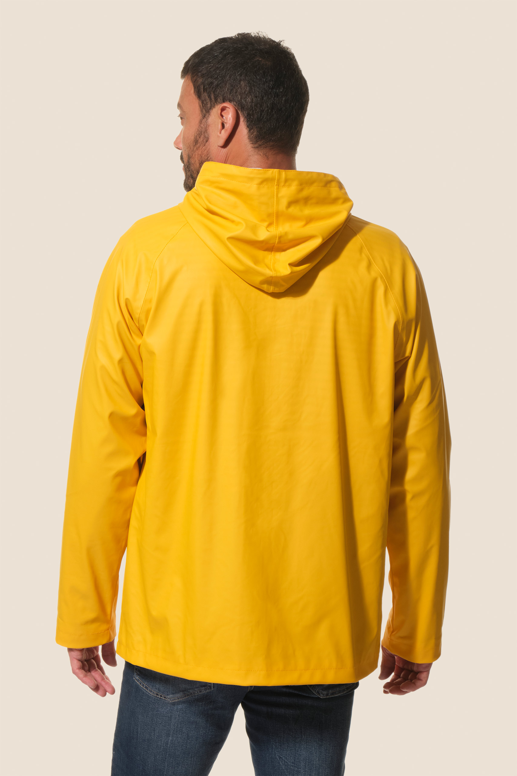 Restez au sec avec notre ciré authentique marin Proue. Sa doublure en jersey rayé apporte douceur et confort, tandis que sa coupe droite et sa capuche ajustable vous protègent efficacement sous la pluie.