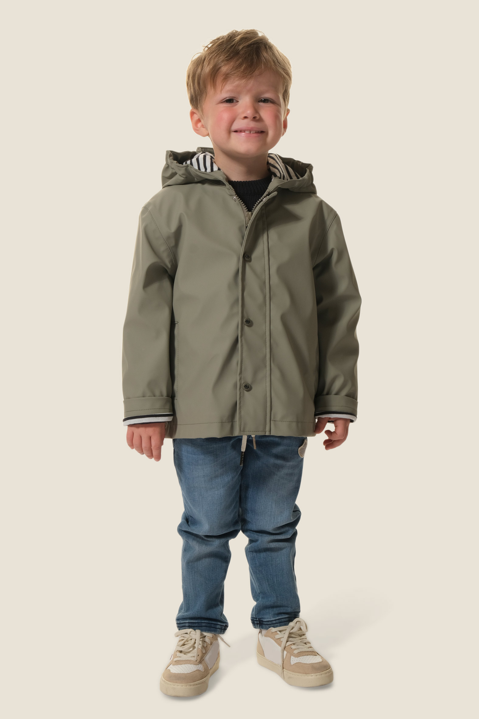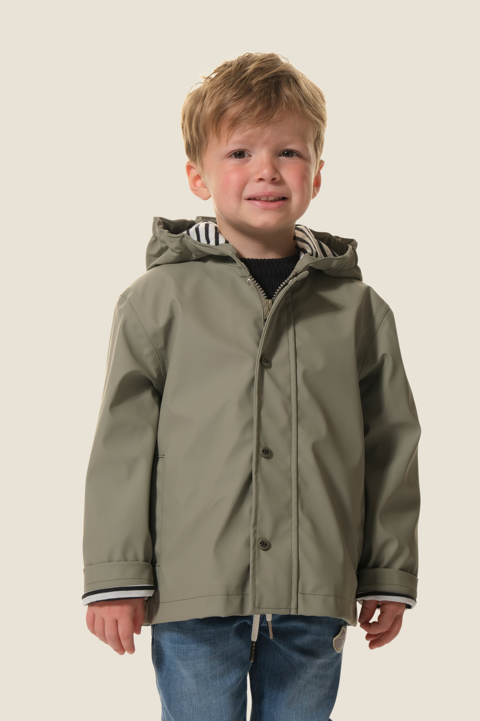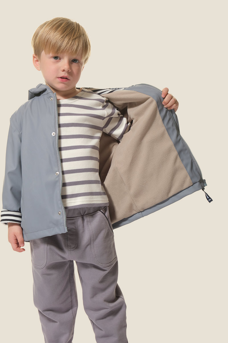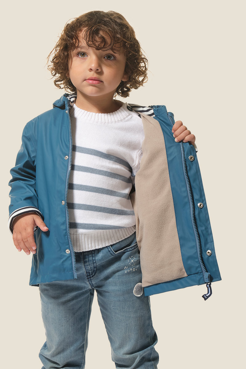- Fermeture devant par une fermeture à glisière et une patte de boutonnage avec des boutons pressions