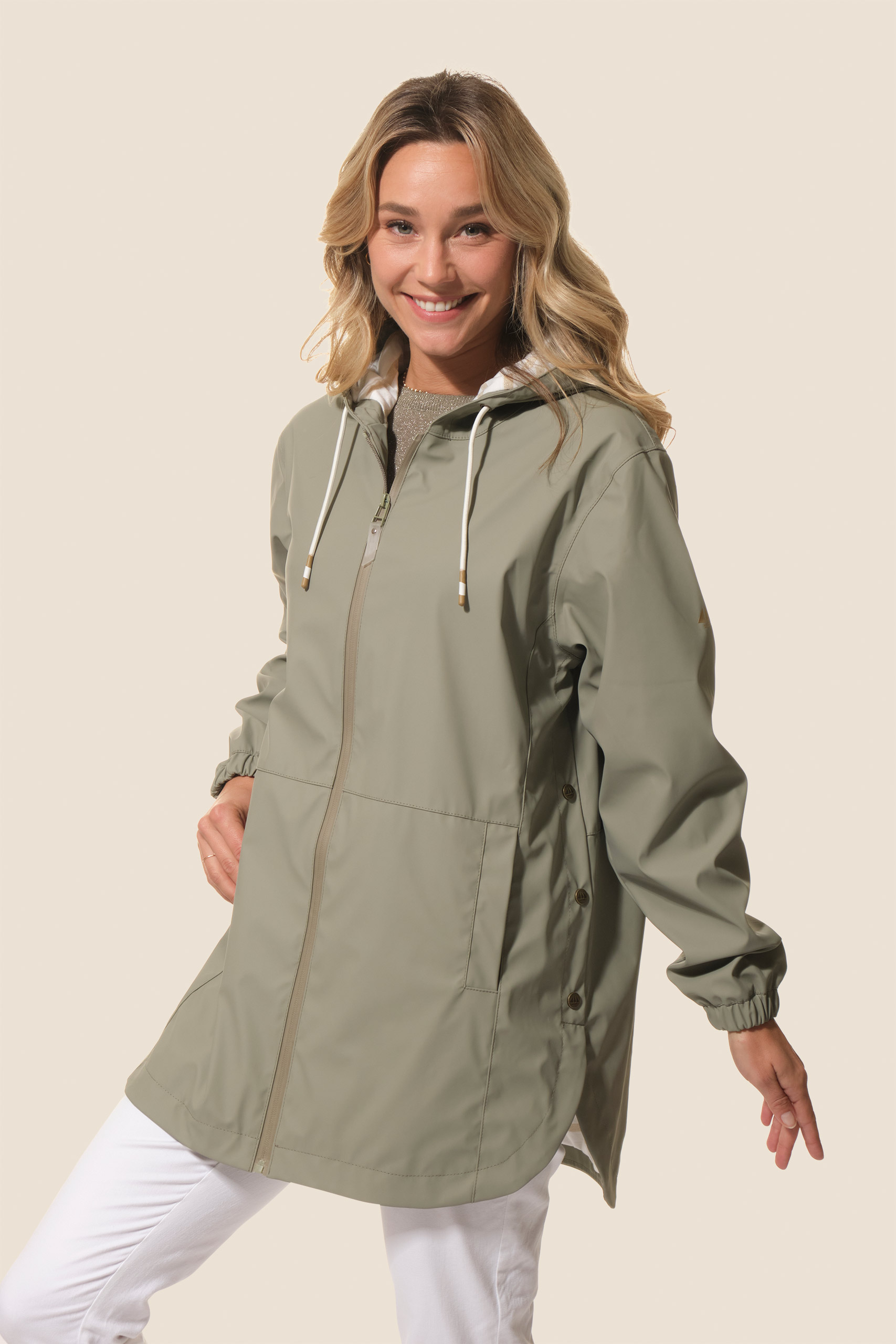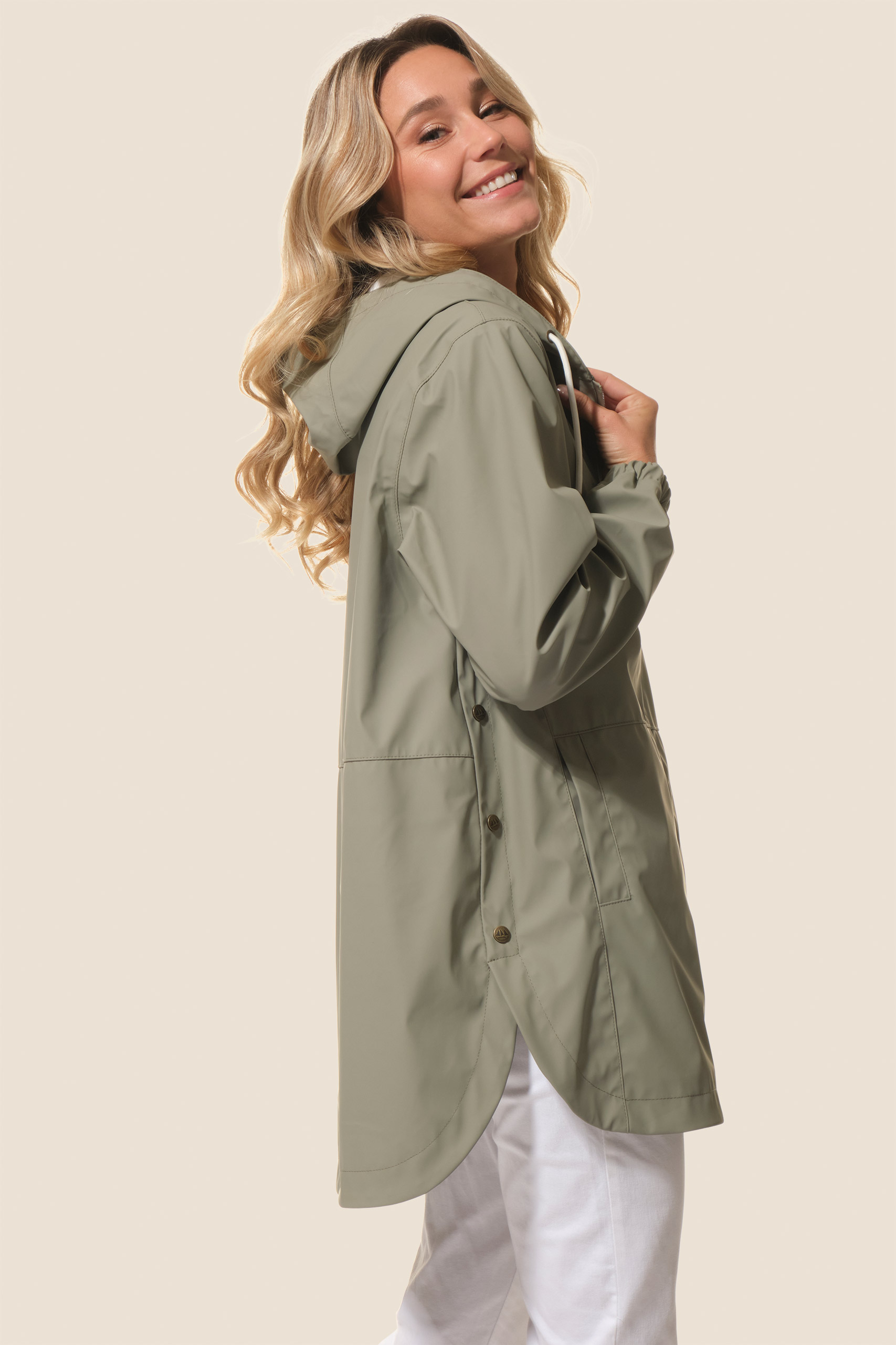 Confort, style et imperméabilité : le ciré Pauline séduit par sa coupe ample, sa doublure métallisée, sa capuche fantaisie et ses détails raffinés pour affronter la pluie avec élégance.