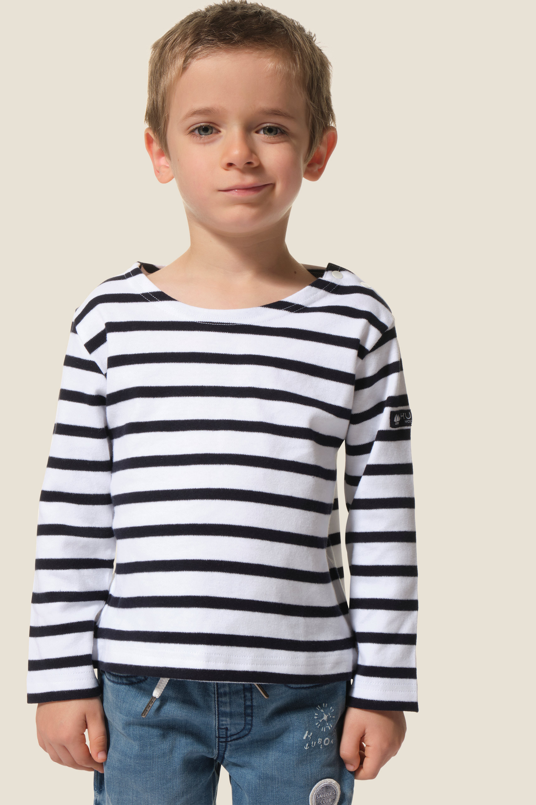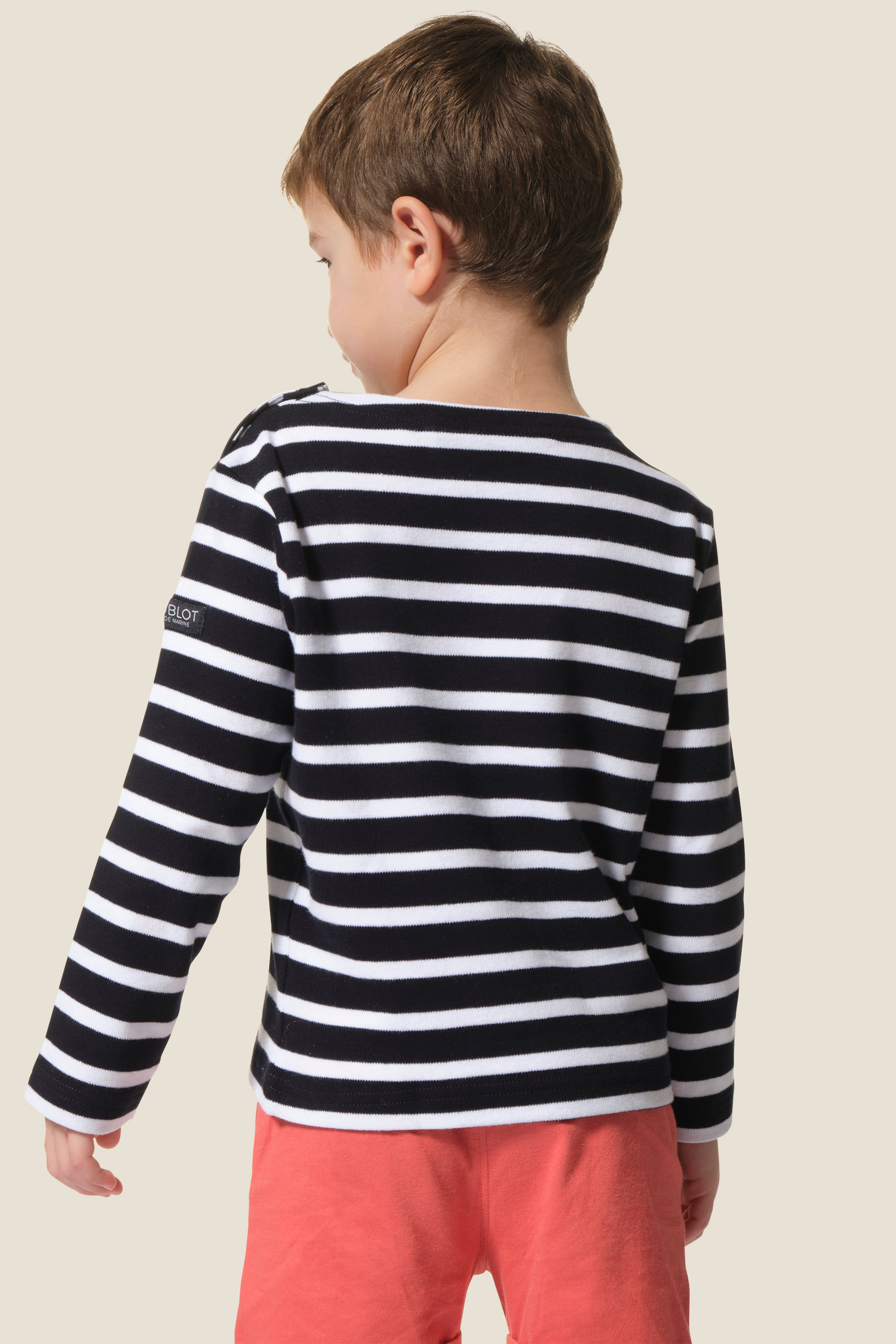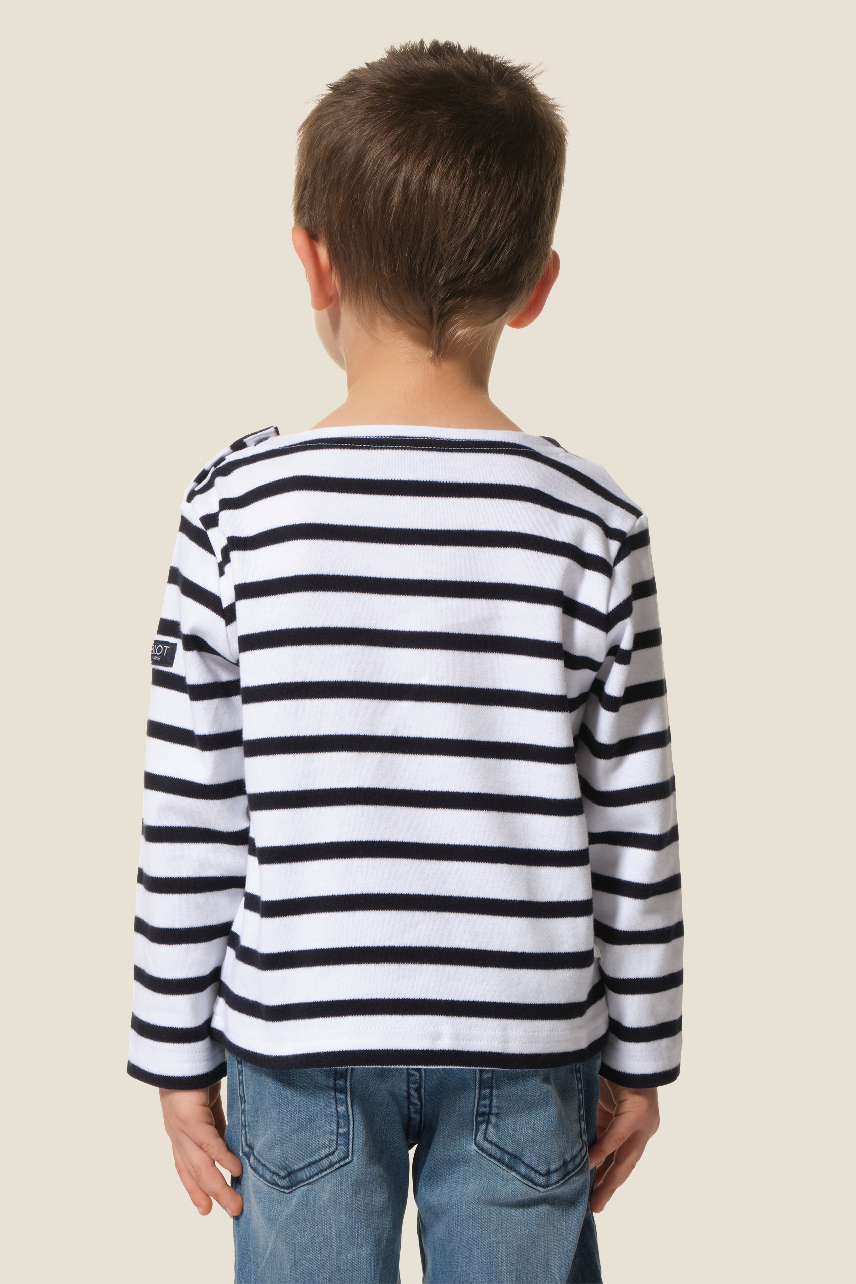 Marinière mixte manches longues – Encolure ronde – Fermeture sur l’épaule côté gauche par des boutons pressions