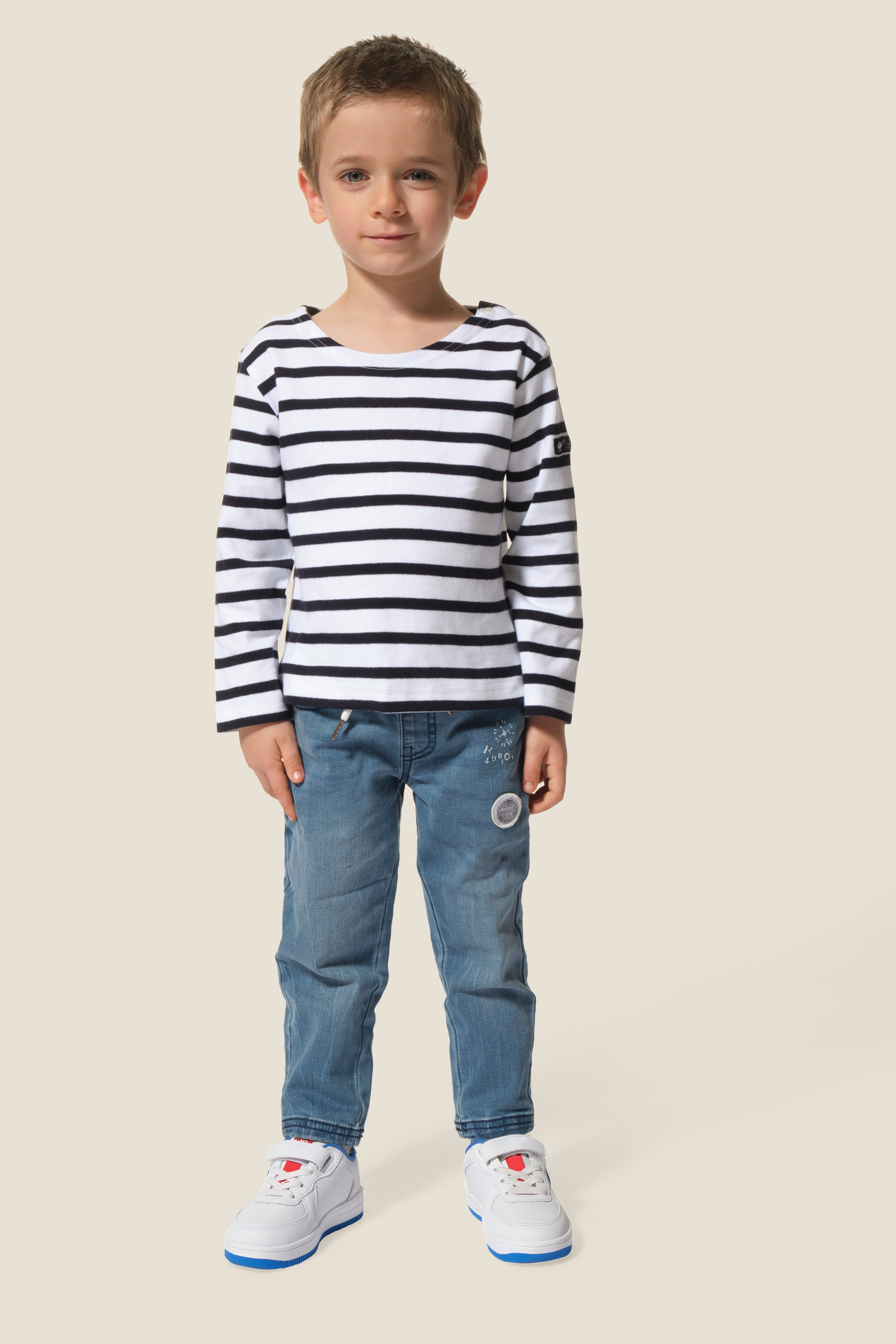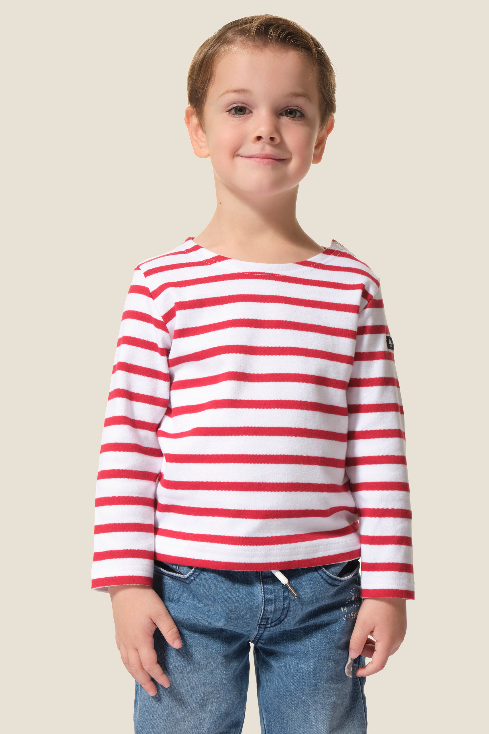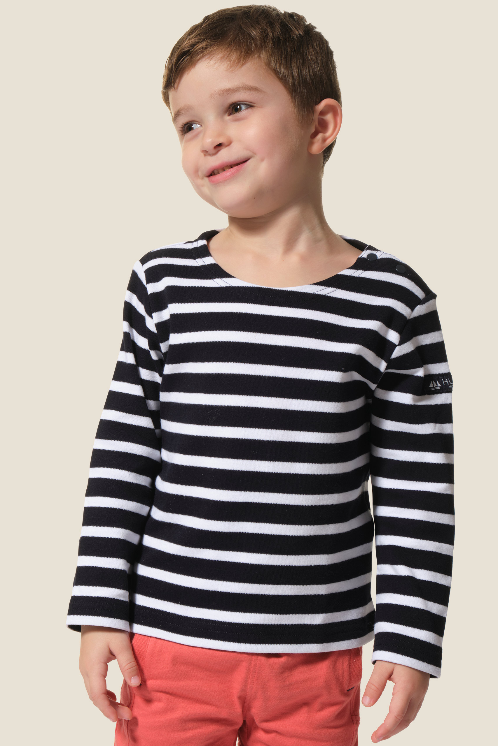 Marinière mixte manches longues – Encolure ronde – Fermeture sur l’épaule côté gauche par des boutons pressions