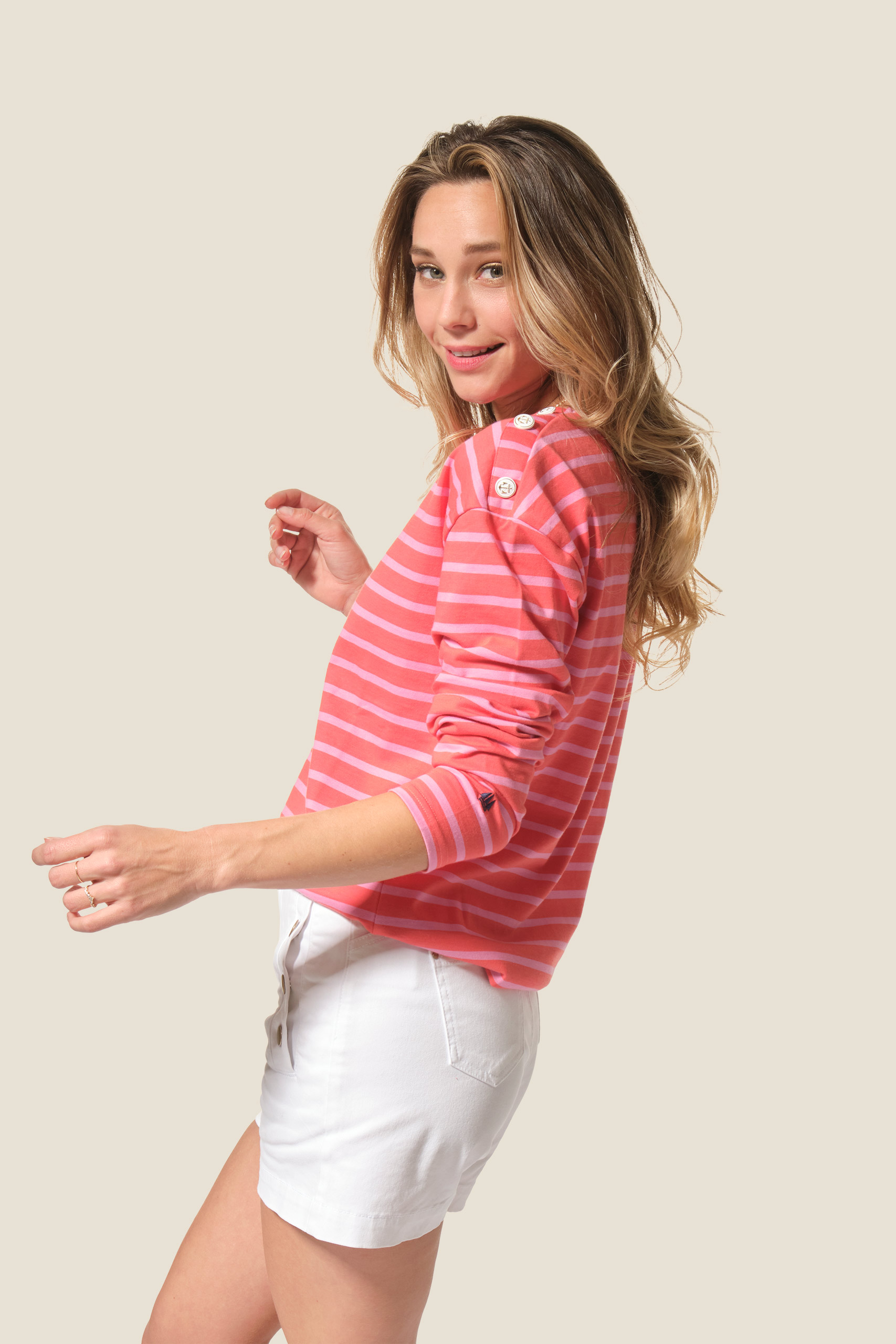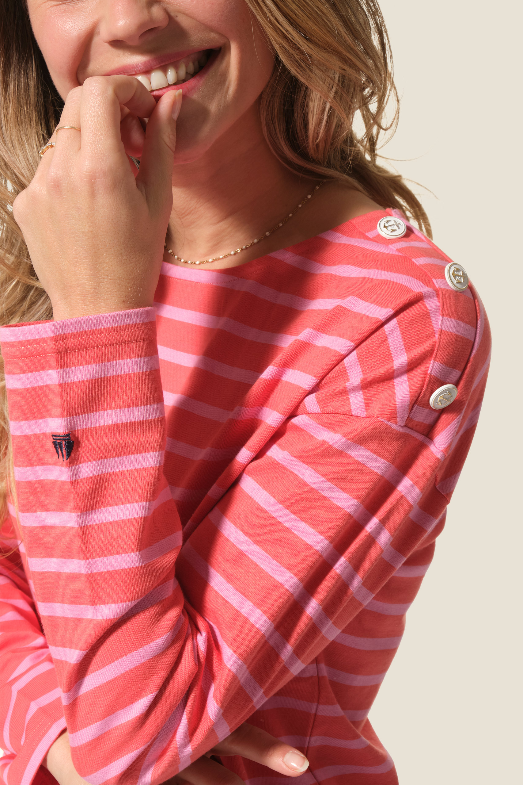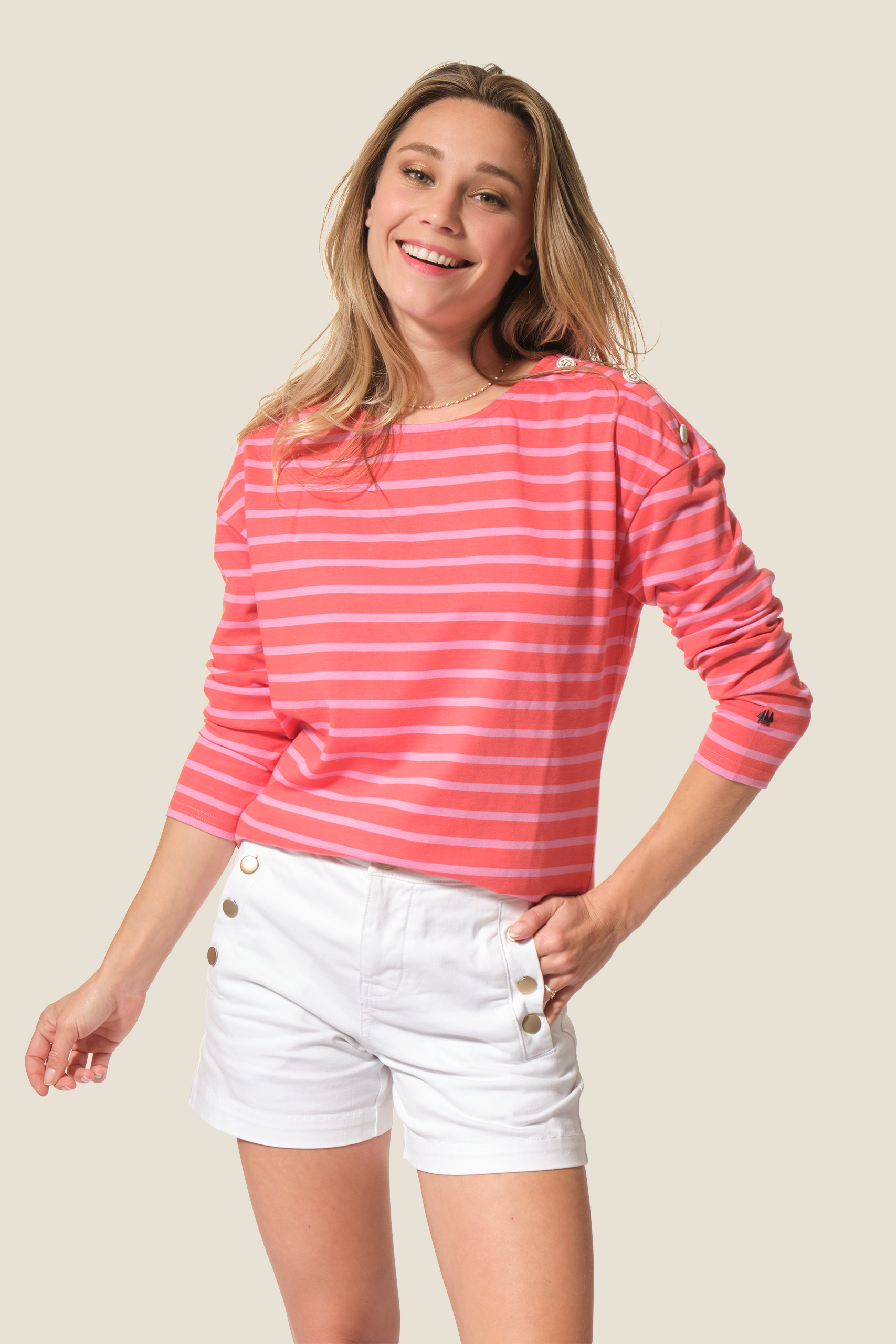 - Col rond et boutons décoratifs sur l’épaule gauche