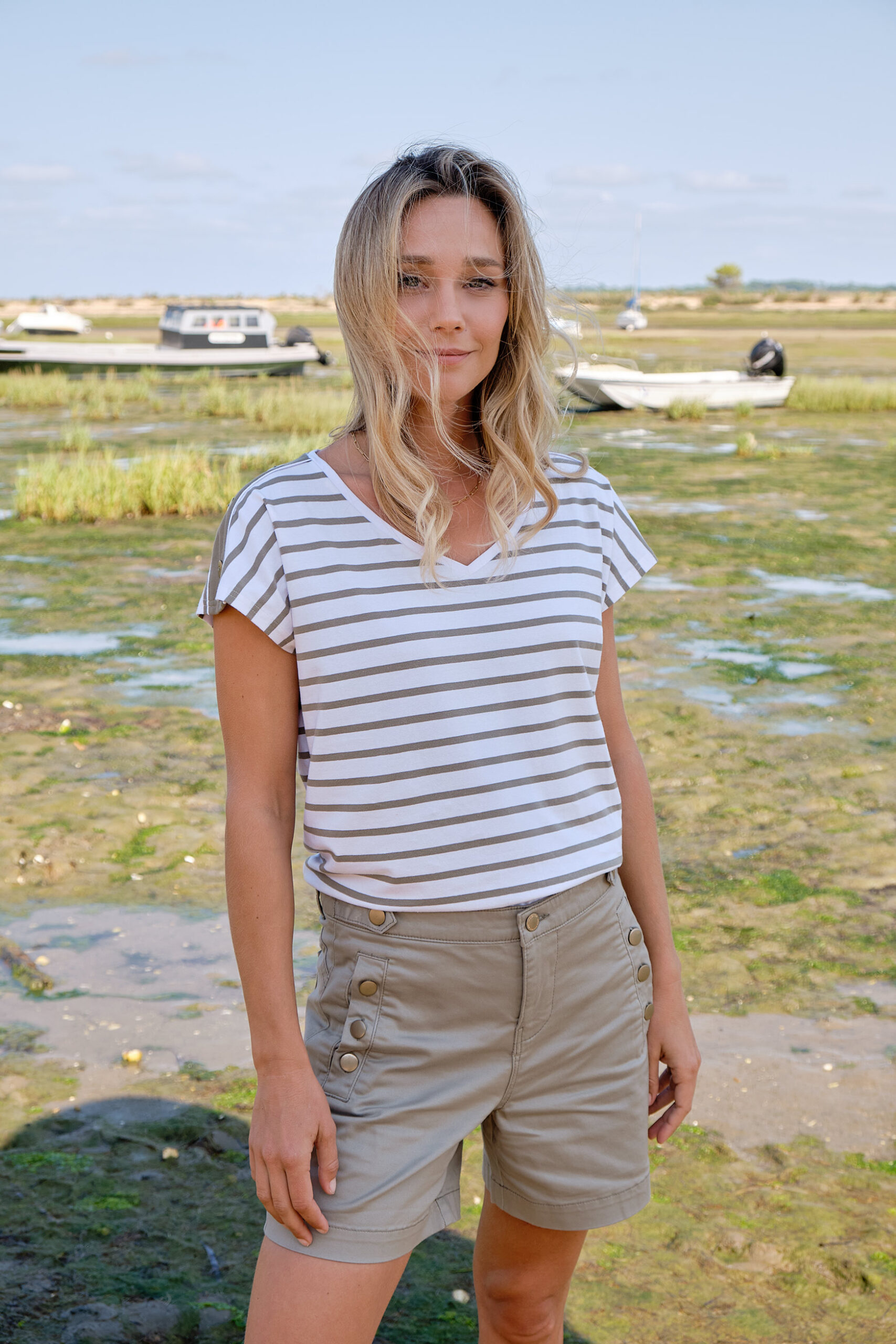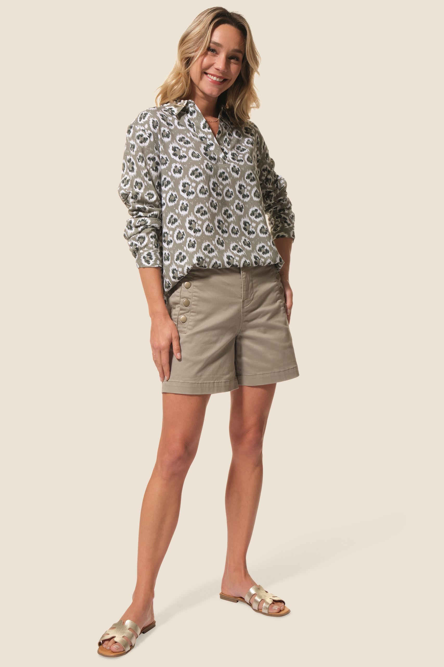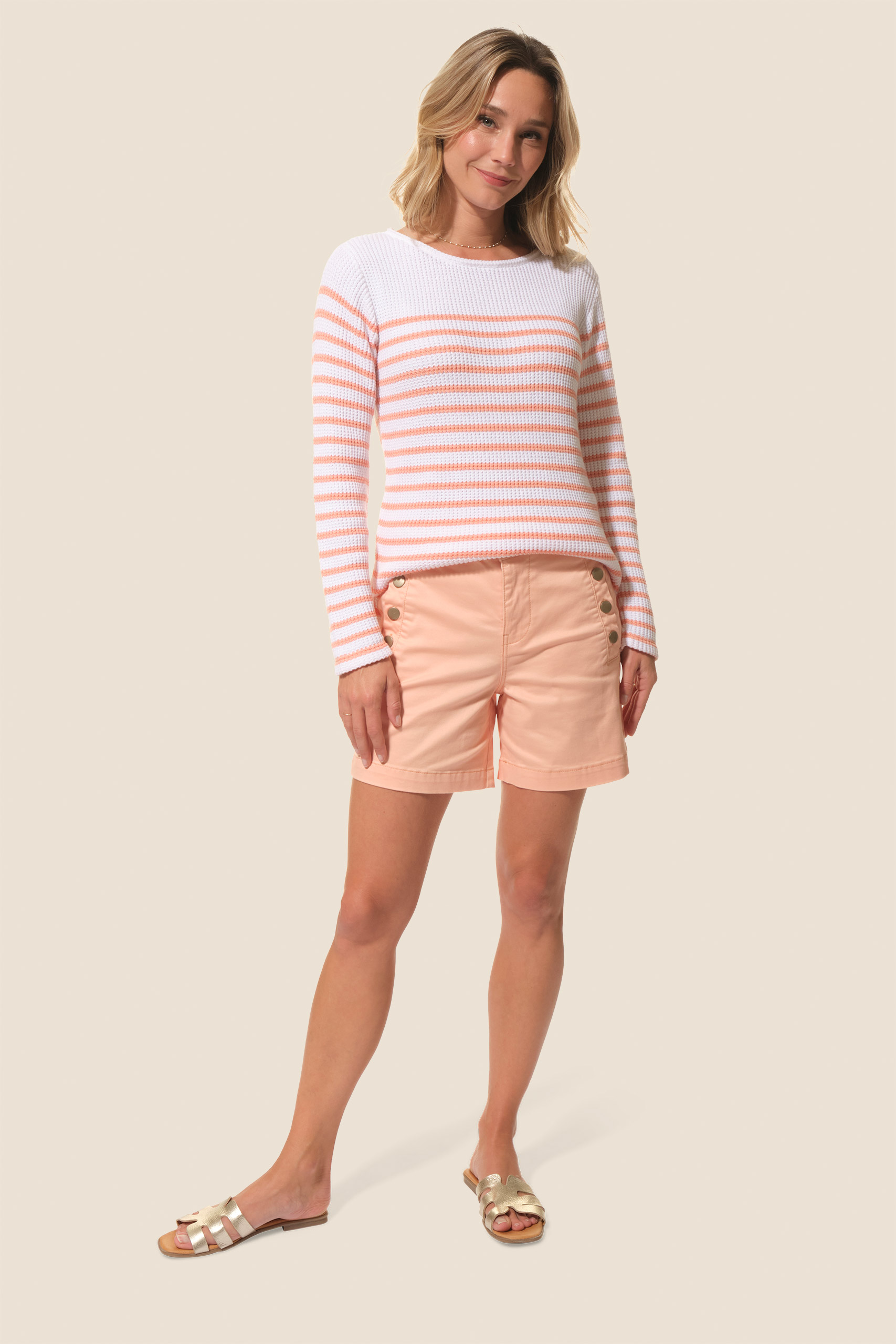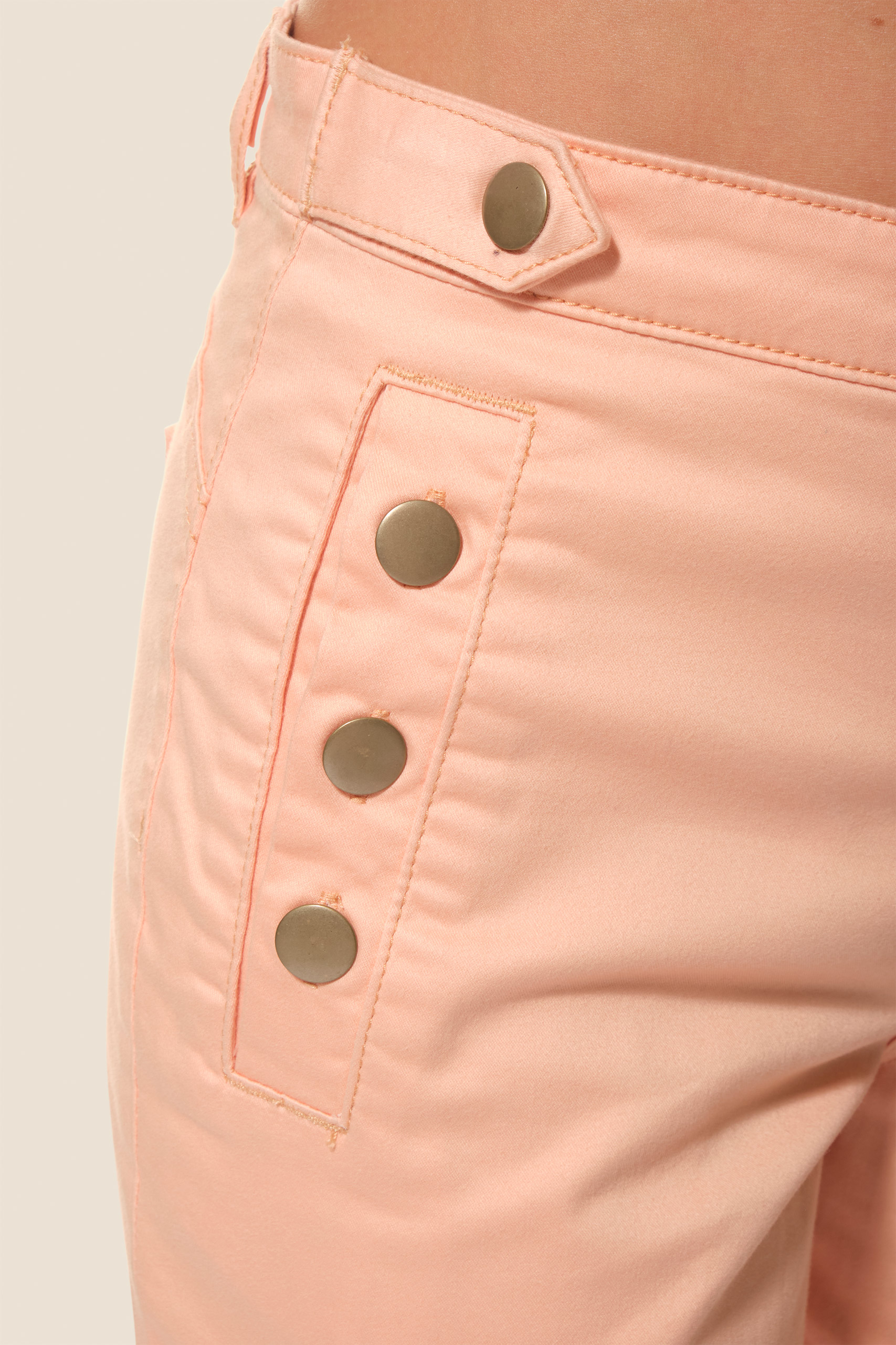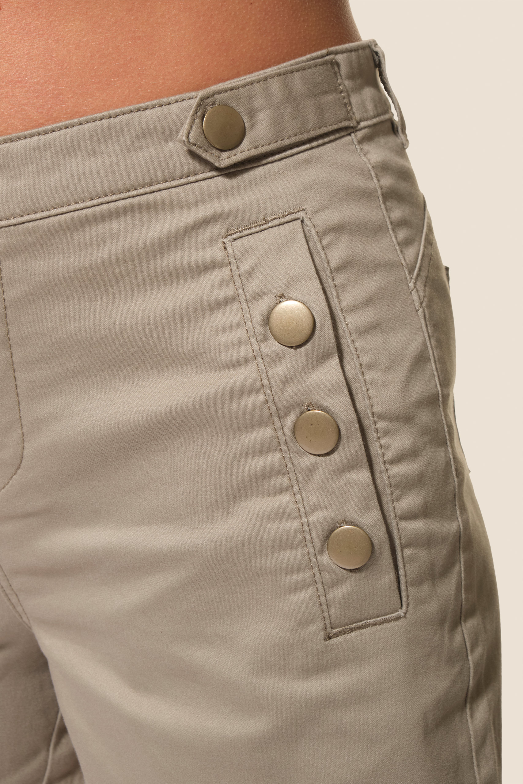 - Short femme en toile avec boutons dorés aux poches et à la taille