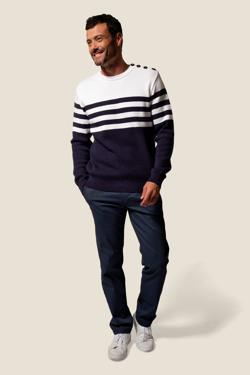 Pull homme rayé col rond Kais