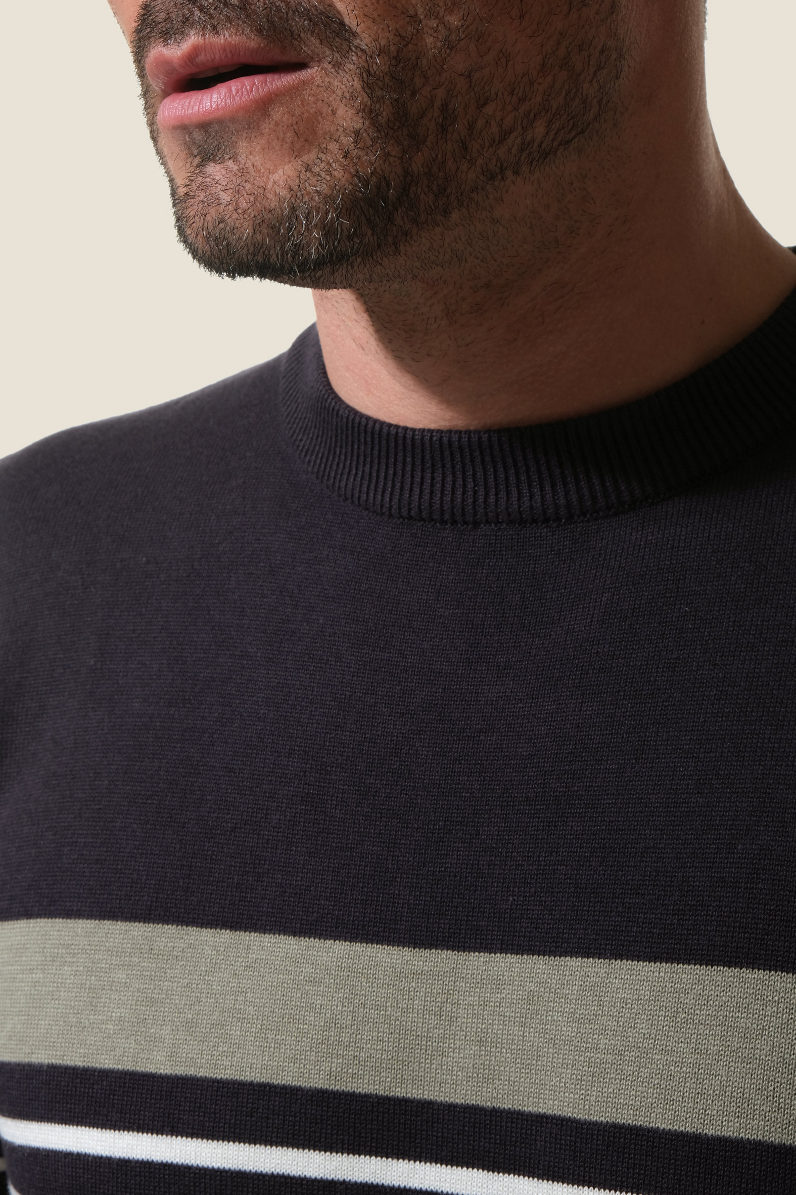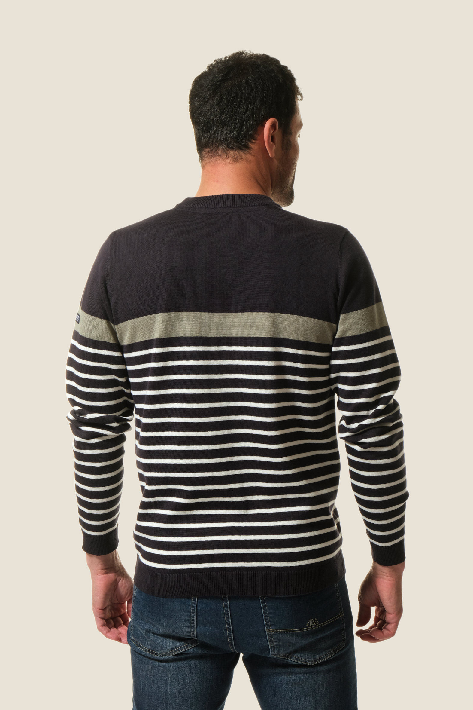 - Pull marin homme avec bloc color et bande avec couleur contrastante
