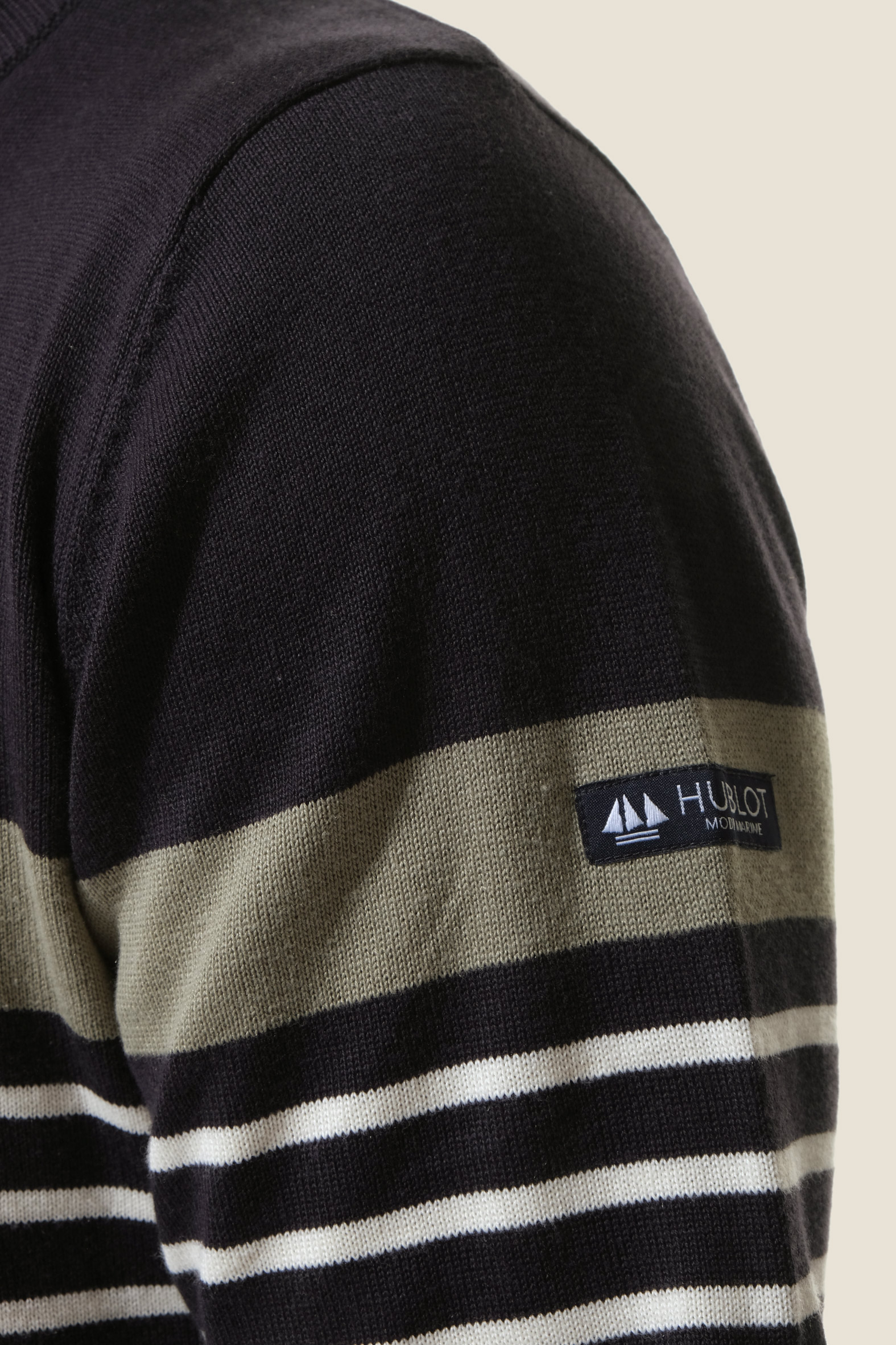 - Etiqette logo tissée cousue sur la manche gauche