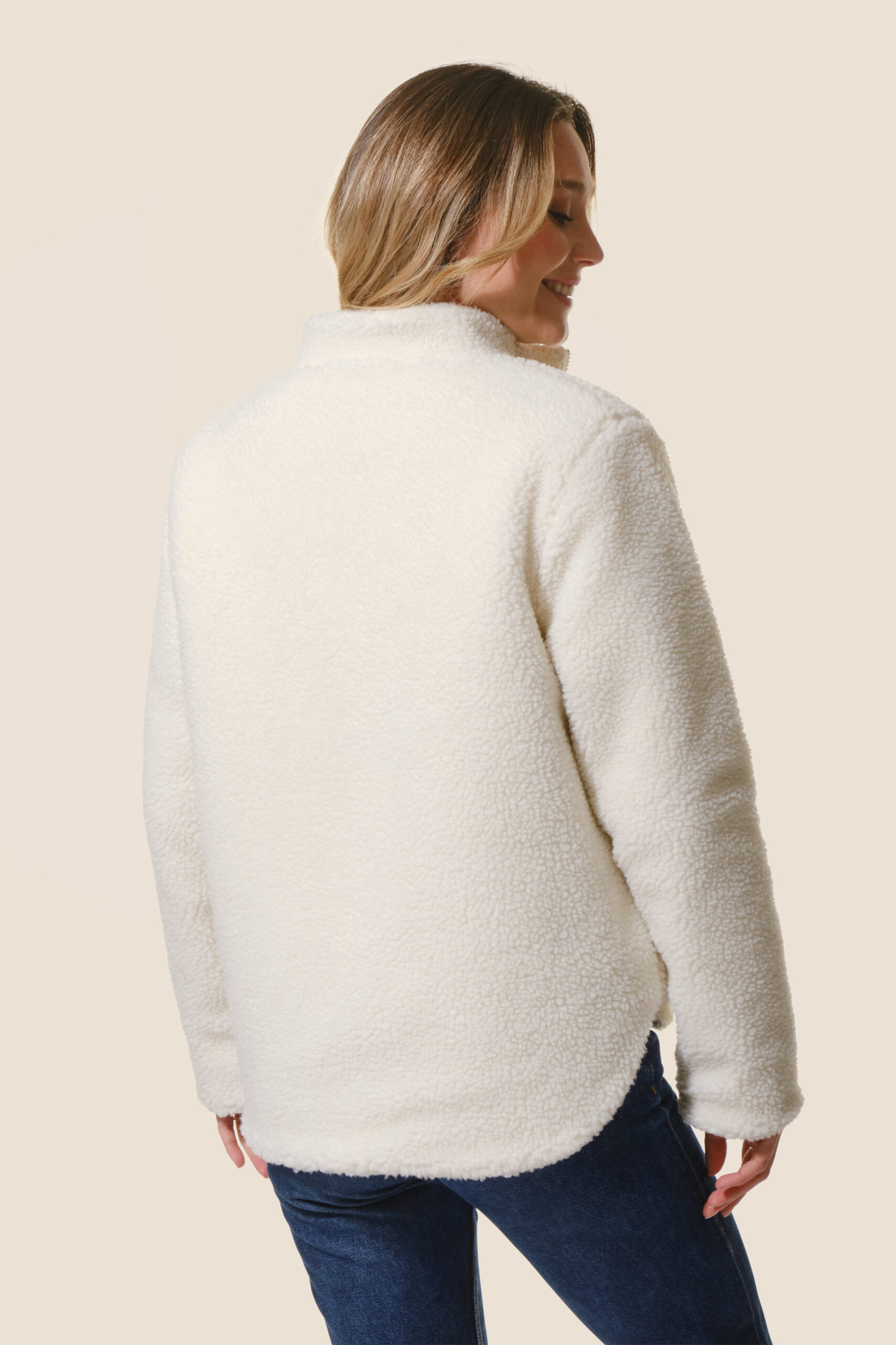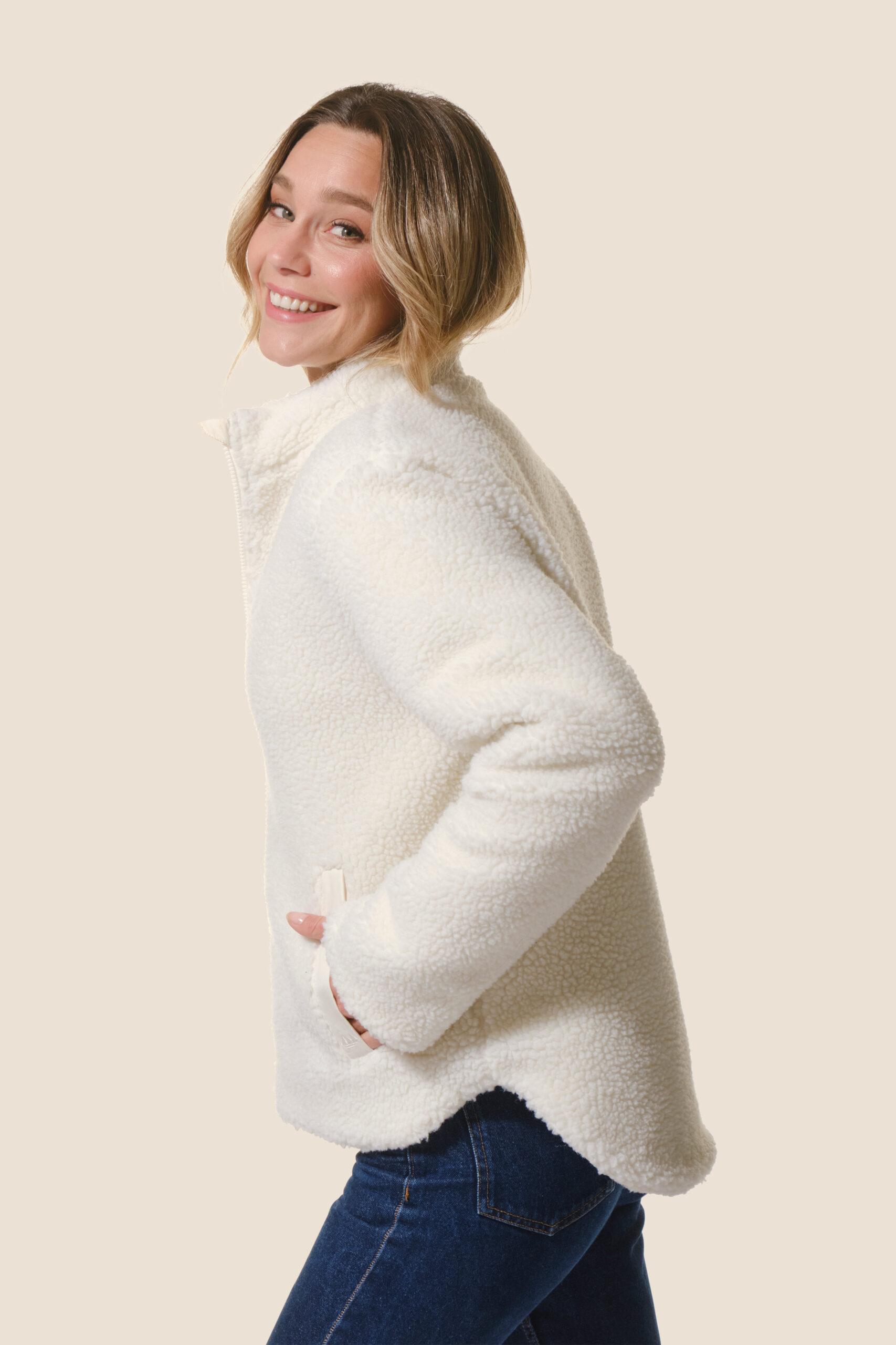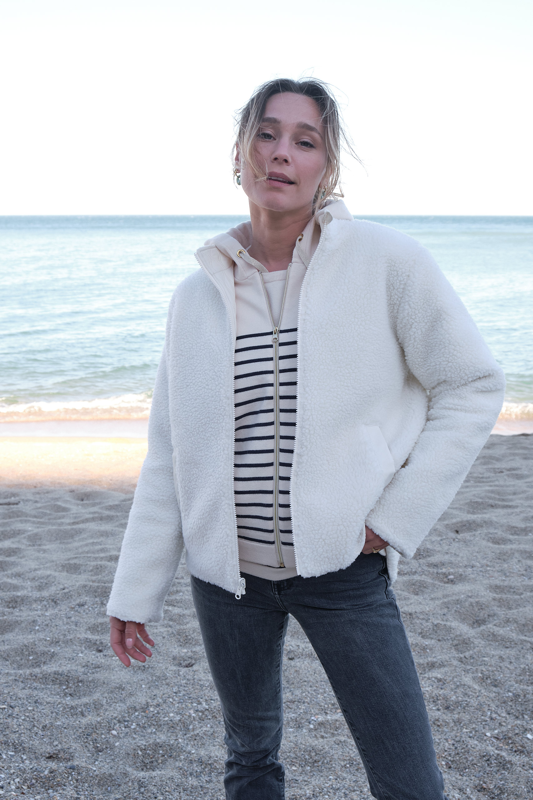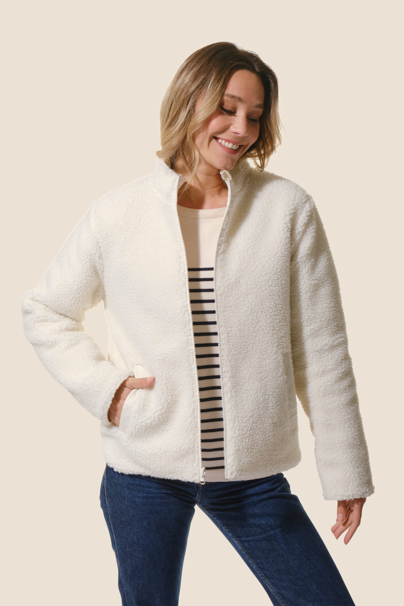 - Veste femme réversible, avec un côté en tissu matelassé et l’autre en tissu sherpa doux