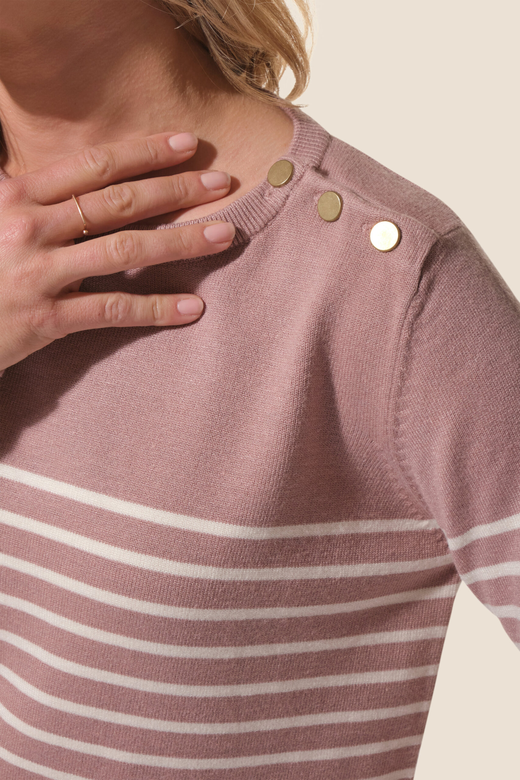 Pull femme col rond avec boutons épaules Gabrielle