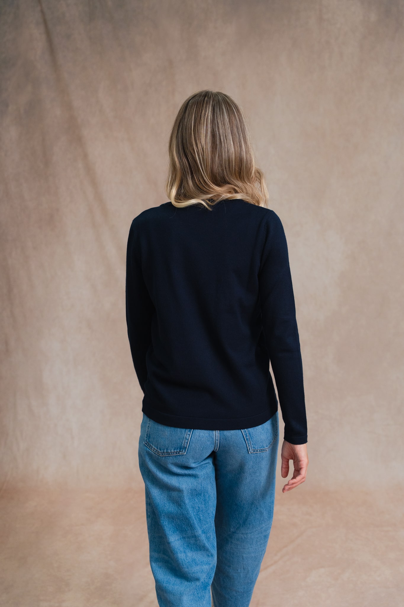 - Encolure ronde et boutons sur l’épaule gauche