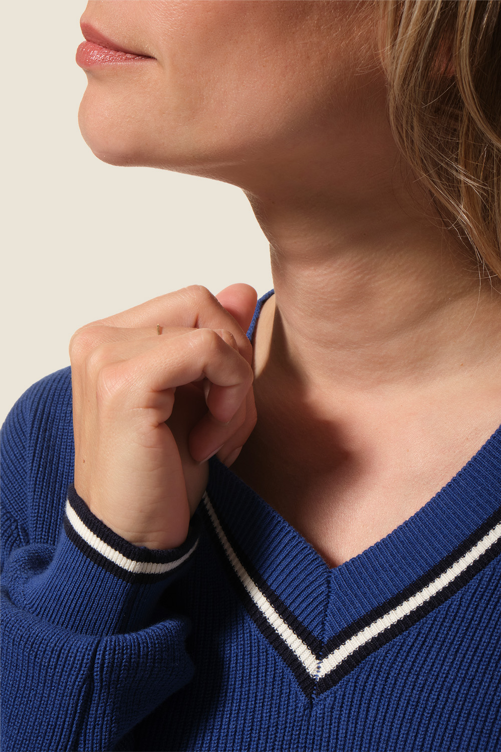 - Col V en côte perlée fine