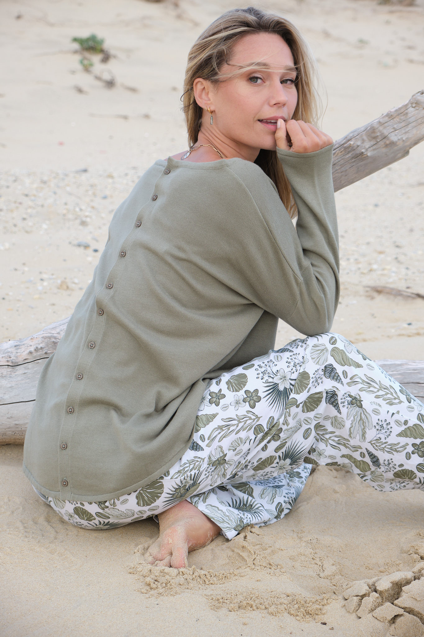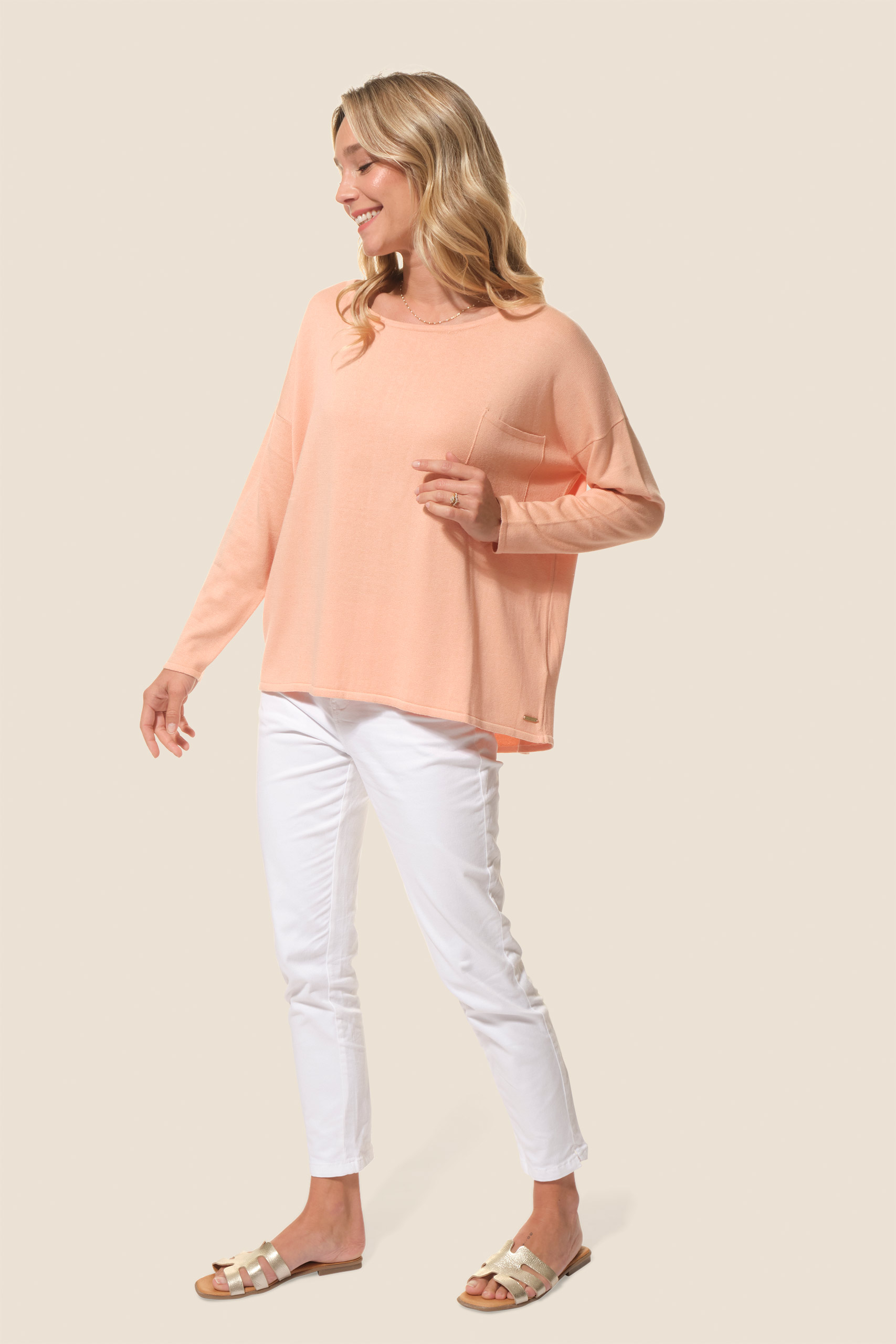 Décontracté et moderne, le pull Ruby en coupe oversize séduit par son encolure bateau, ses manches raglan et sa patte de boutonnage originale au dos, pour un style chic et confortable au quotidien.