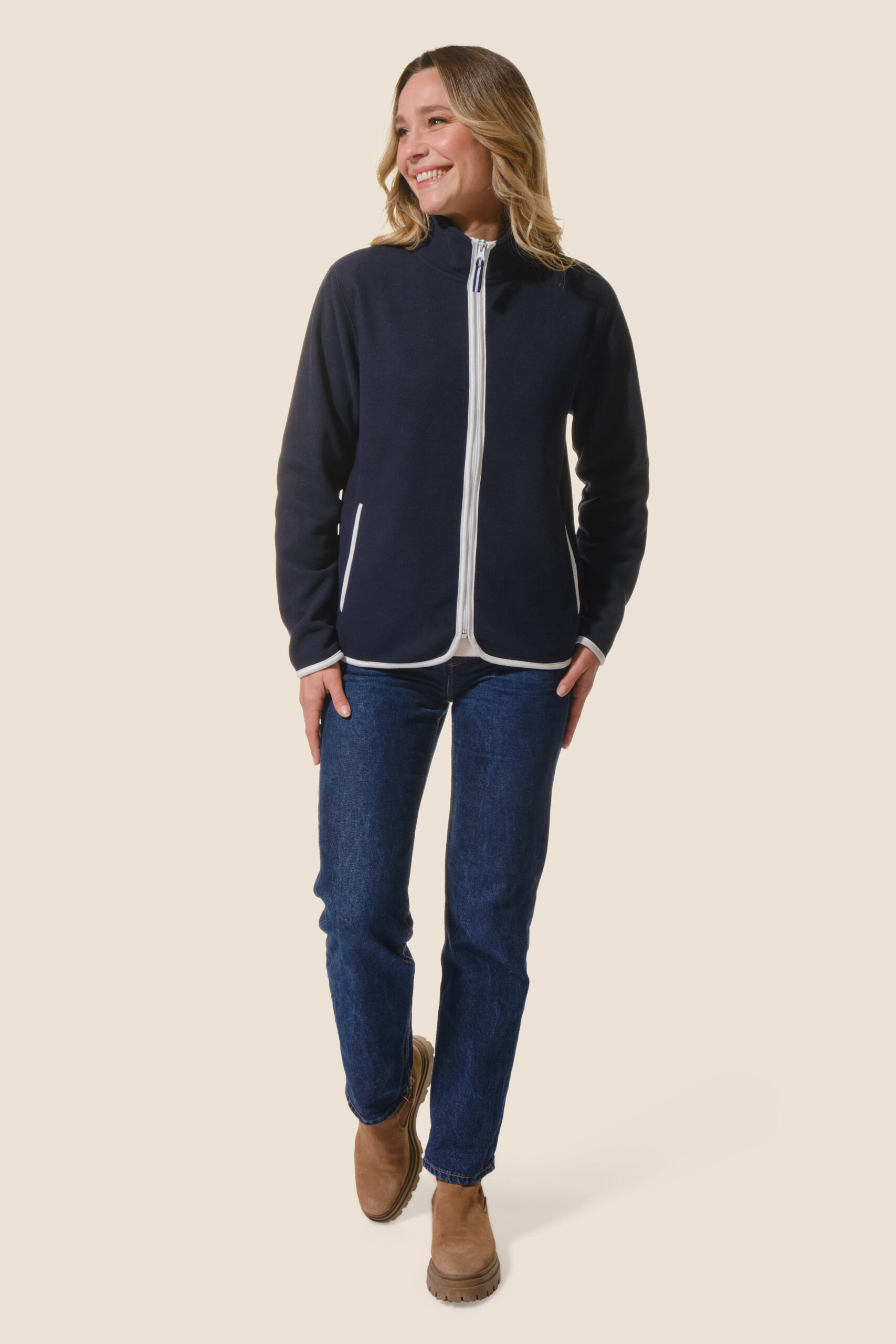 Chaleureuse et pratique, la veste Yvane en polaire zippée avec col montant et poches latérales allie confort et style au quotidien.